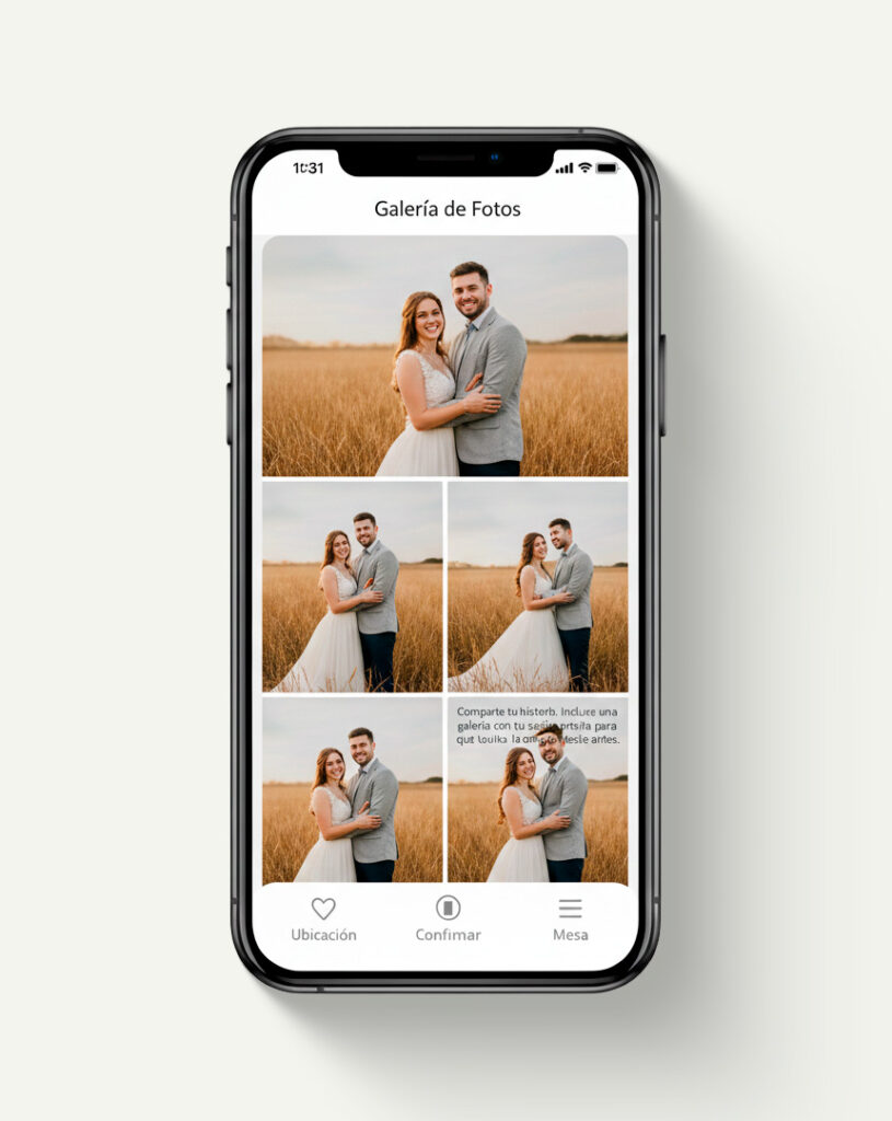 Comparte tu historia. Incluye una galería con tu sesión previa para que todos vivan la emoción desde antes.